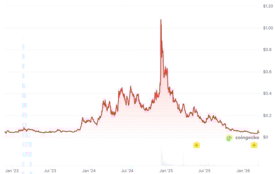 ACX is down 97.5% from its all-time high. Source: CoinGecko