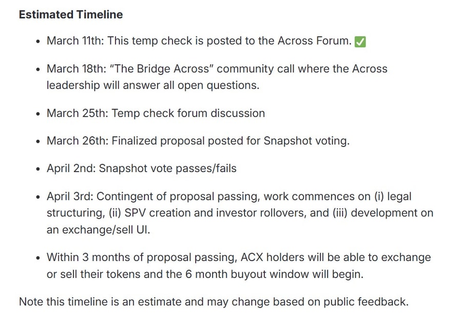DAO members are expected to vote on the proposal in early April. Source: Across