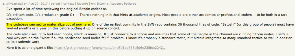 “I have not been able to find a single person in the public space of computing, whether it be a Hanson Robotics, in the Sophia AI or it be Peter Thiel at Palantir with all of his super nerds or it be any person who graduated from Stanford in the last 20 years, I’ve literally only maybe found two people in the entire world that have the skill to write Bitcoin.”