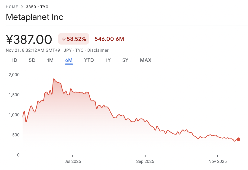 The company is choosing to raise capital by issuing preferred shares instead of common stock, which appears to be aimed mainly at protecting the stock price from further decline. Metaplanet’s share price has already plummeted nearly 60% in the past six months, now standing at 387 yen (approximately $2.46), according to Google Finance.