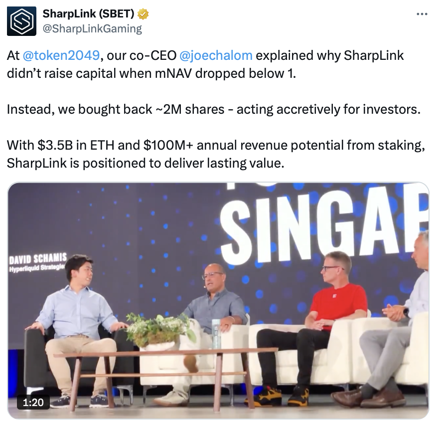 Investors clearly like what they’re seeing with the Ether accumulation plan. Sharplink’s stock is up almost 90% since the start of the year, according to Google Finance.
