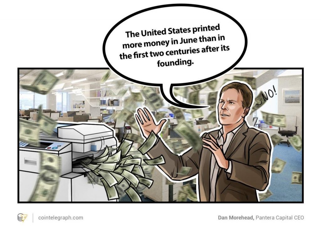 Now here’s a stunning statistic: The U.S. printed more money in June than in the first two centuries after its founding. That’s according to Pantera Capital CEO Dan Morehead, who has been looking into the levels of quantitative easing that the Federal Reserve has deployed to combat the economic fallout from the coronavirus pandemic. In a letter to investors, he said: “[In June] the U.S. budget deficit — $864 billion — was larger than the total debt incurred from 1776 through the end of 1979.”
