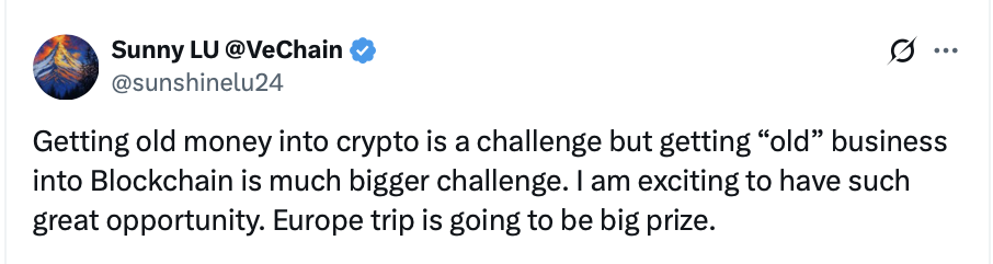 VeChain founder and CEO Sunny Lu’s first experience buying Bitcoin is the kind of moment that sticks with you for life, but not in the way most Bitcoin OGs would hope.