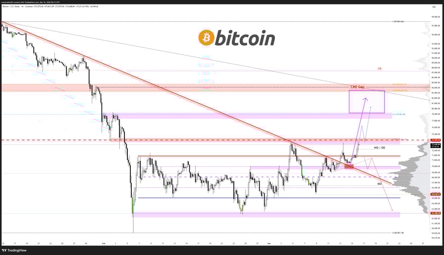 Bitcoin (BTC) starts the third week of March fighting for a breakout after a trip to near $75,000.