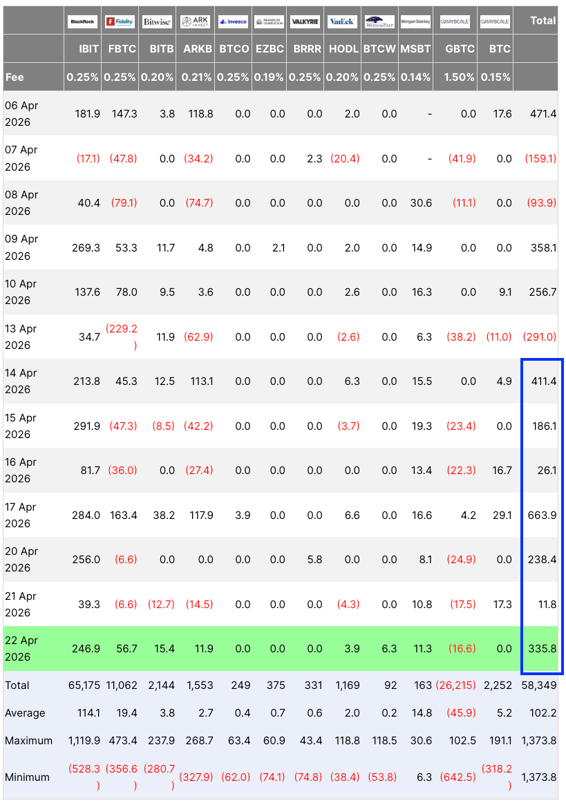 Spot Bitcoin ETF flows TABLE. Source: Farside Investors