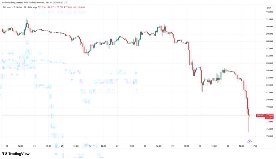 BTC price collapses below $76,000