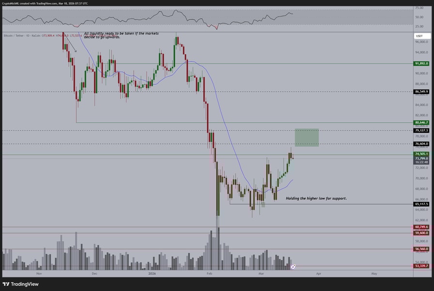 “$BTC hovering below weekly resistance; FOMC later today - I think caution pays here,” trader Jelle wrote in his latest commentary on X.