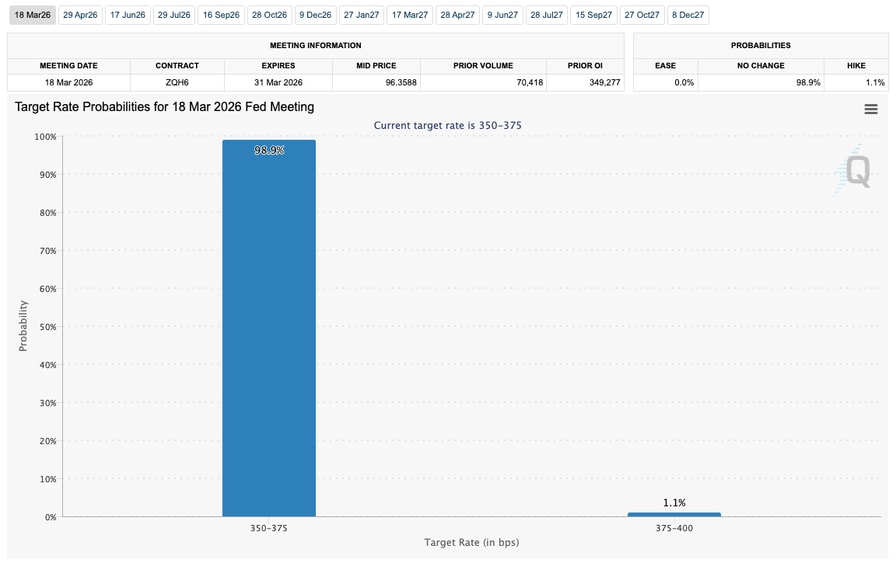 Fed target rate probabilities for March 18 FOMC meeting (screenshot). Source: CME Group FedWatch Tool