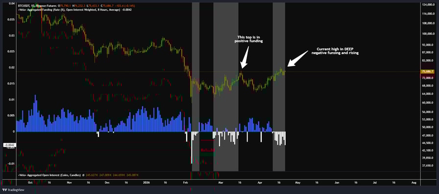 Bitcoin funding stays negative at $78K as short squeeze expectations grow