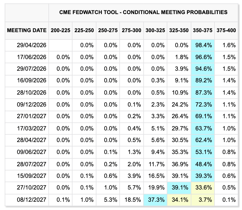 Markets showed little expectation of near-term Federal Reserve rate cuts, a view already reflected in pricing following Thursday’s Personal Consumption Expenditures (PCE) data, according to the CME FedWatch Tool.