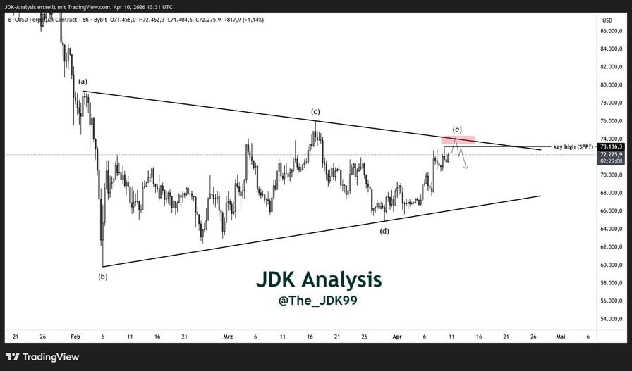 $BTC Liquidity levels to watch in close proximity are that ~$71K region below, and $73K-$74K above (local high). pic.twitter.com/BlKsaZXdpb— Daan Crypto Trades (@DaanCrypto) April 10, 2026