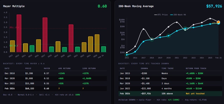 “Throughout Bitcoin's life span we have seen two indicators continue to be the best global market bottom signals: The Mayer multiple (distance from 200-day moving average) and the 200-week moving average,” he argued on the day.