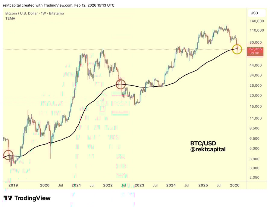 BTC/USD one-week chart with 200EMA. Source: Rekt Capital/X
