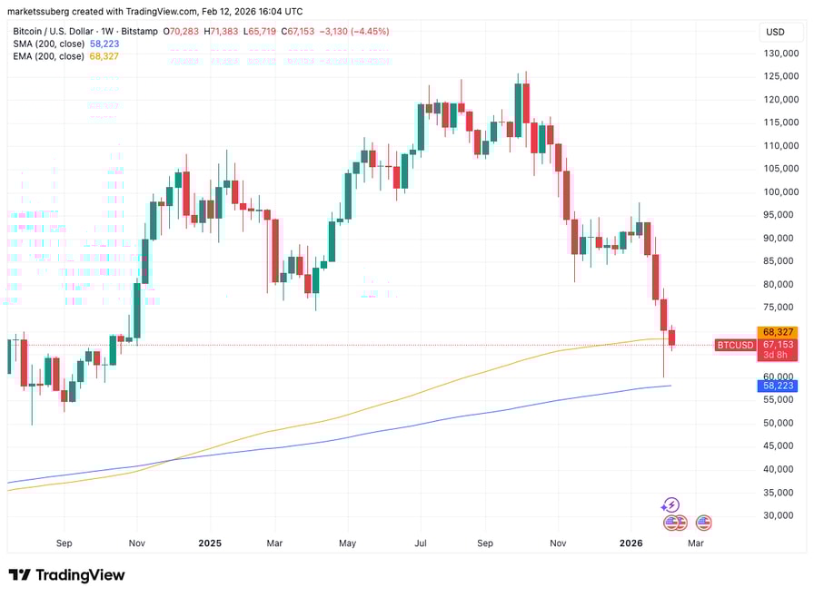 BTC/USD one-week chart with 200-SMA, 200-EMA. Source: Cointelegraph/TradingView
