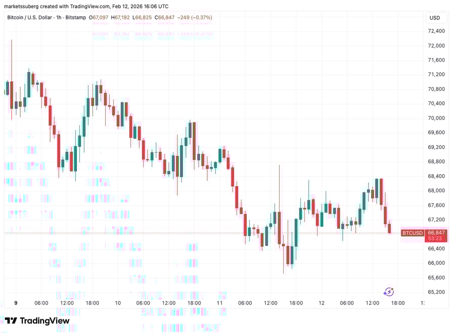 Data from TradingView showed BTC price action focusing on the area around $67,000 for a second day.