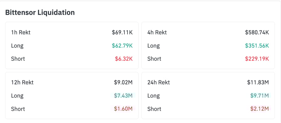 Bittensor liquidations data. Source: CoinGlass