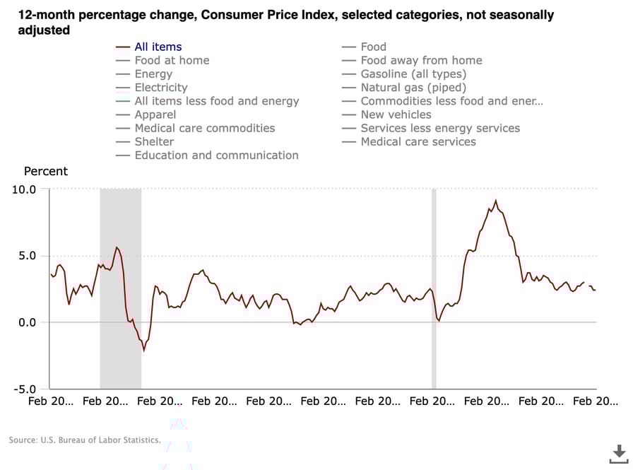 US CPI 12-month % change. Source: Bureau of Labor Statistics
