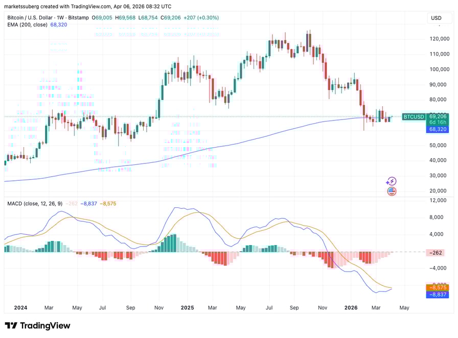 BTC/USD one-week chart with MACD data, 200 EMA. Source: Cointelegraph/TradingView