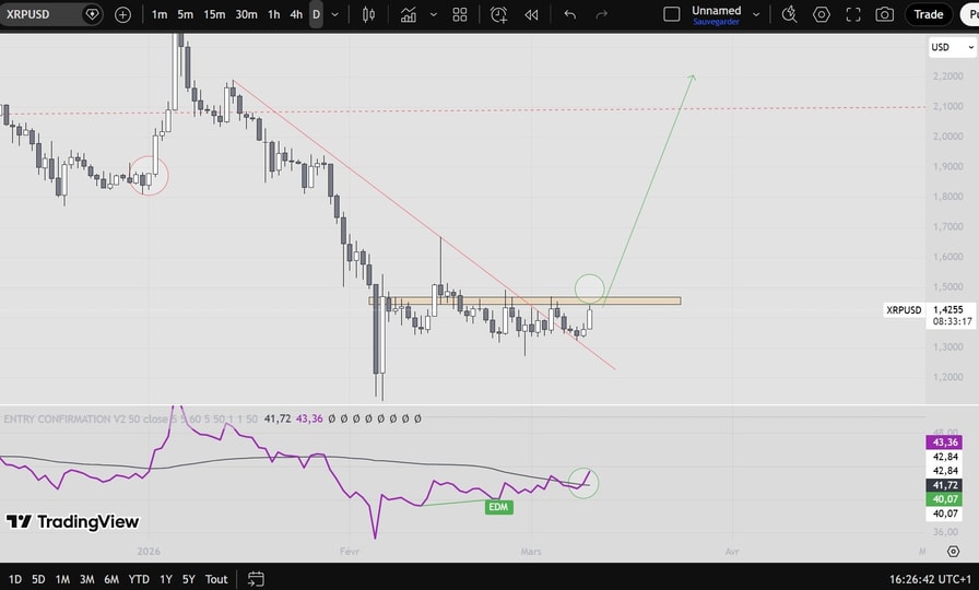 XRP’s (XRP) price was up 3% on Friday to trade above $1.40 as several technical and onchain indicators suggested it was due for a “significant” upward breakout.