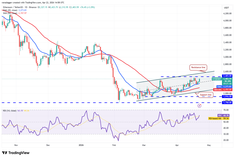 Ether (ETH) rebounded off the 20-day EMA ($2,273) on Monday, indicating a change in sentiment from selling on rallies to buying on dips.