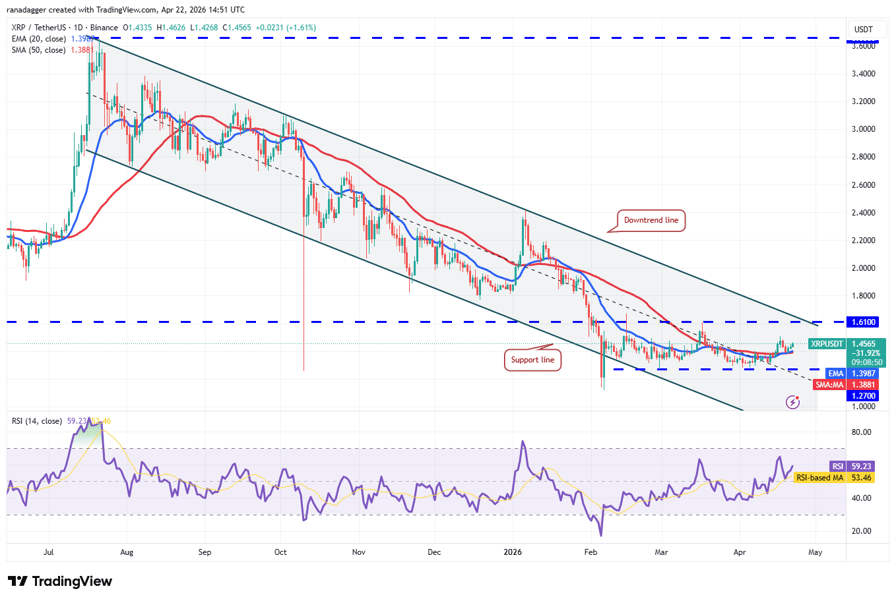 XRP (XRP) turned up from the moving averages on Monday, indicating that the bulls are viewing the dips as a buying opportunity.