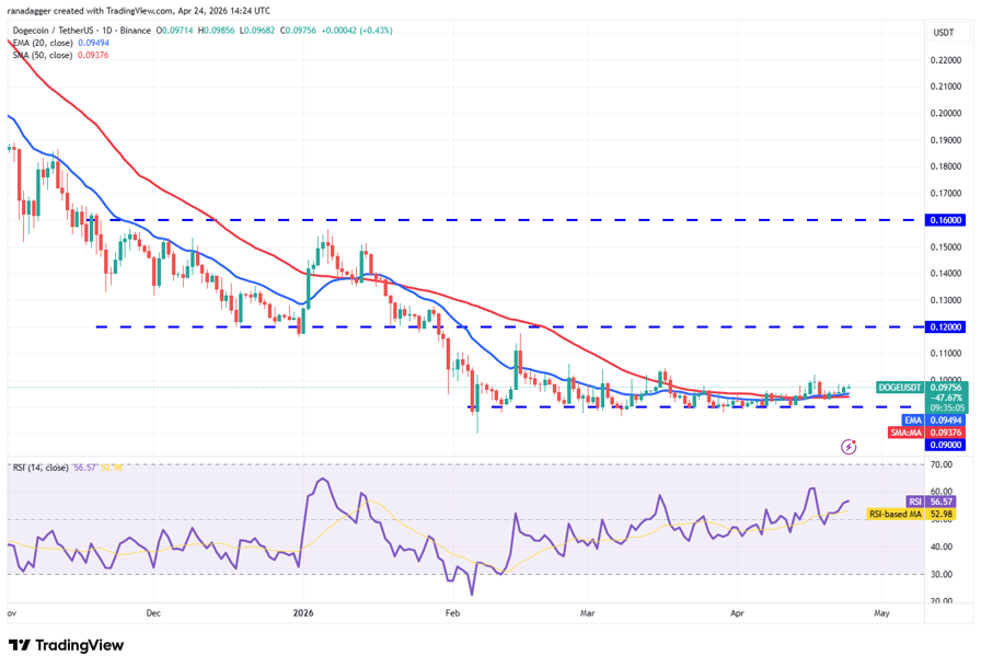 The 20-day EMA ($0.09) has started to turn up, and the RSI is in the positive zone, signaling that the bulls have the upper hand. If the $0.10 level is taken out, the DOGE/USDT pair may surge to the $0.12 resistance.