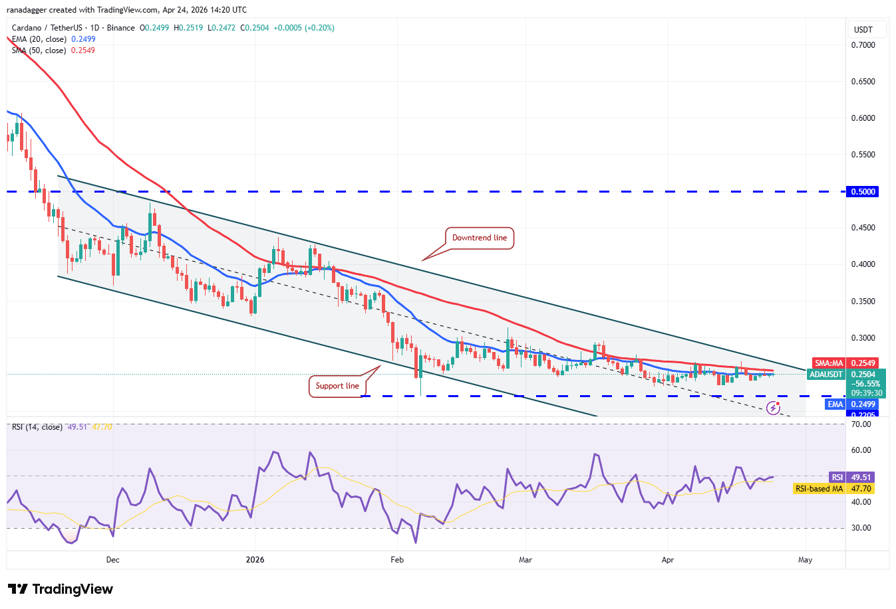 Buyers tried to push Cardano (ADA) above the 50-day SMA ($0.25) on Wednesday, but the bears held their ground.