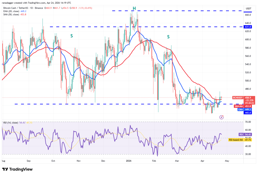 Bitcoin Cash (BCH) closed above the 50-day SMA ($453) on Wednesday, and the bulls successfully defended the level during the retest on Thursday and Friday.