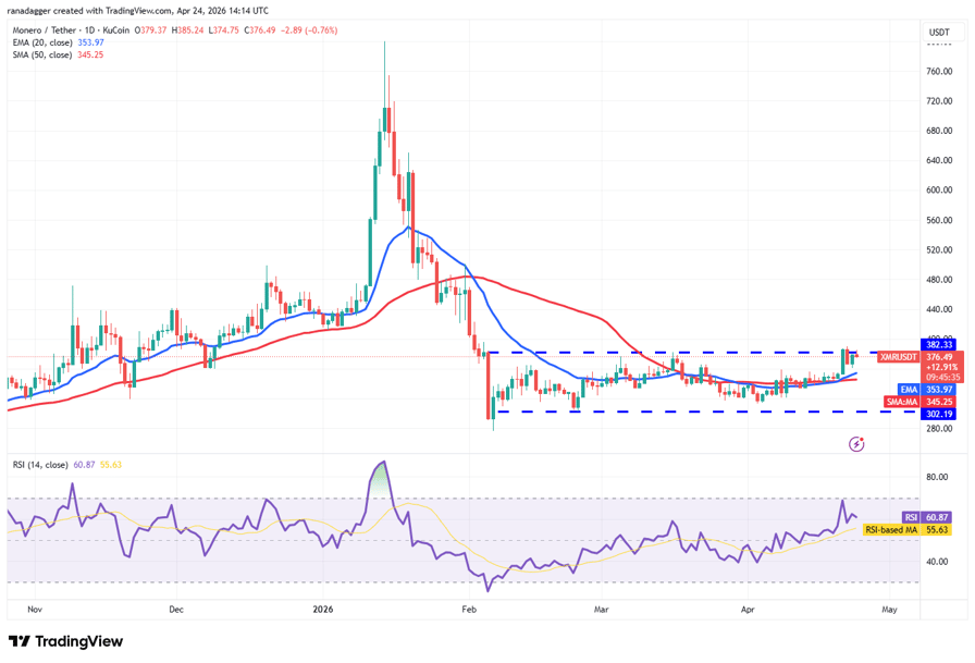 Monero (XMR) bounced off the 20-day EMA ($353) on Thursday, indicating solid demand at lower levels.