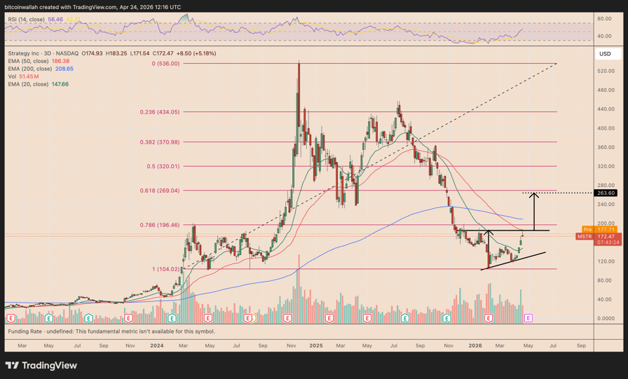 MSTR three-day chart. Source: TradingView