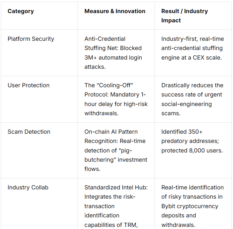 Bybit said the system also identified 350 high-risk investment fraud addresses that shielded 8,000 users from potential withdrawal losses during the previous quarter. It also thwarted over three million credential stuffing attacks attempted by hackers throughout 2025.