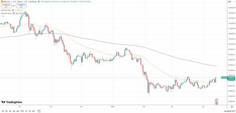 The bearish sentiment remains among analysts despite today’s Bitcoin rally to just below $75,000 on renewed hope for a deal between the US and Iran to end weeks of conflict that have suppressed global markets.