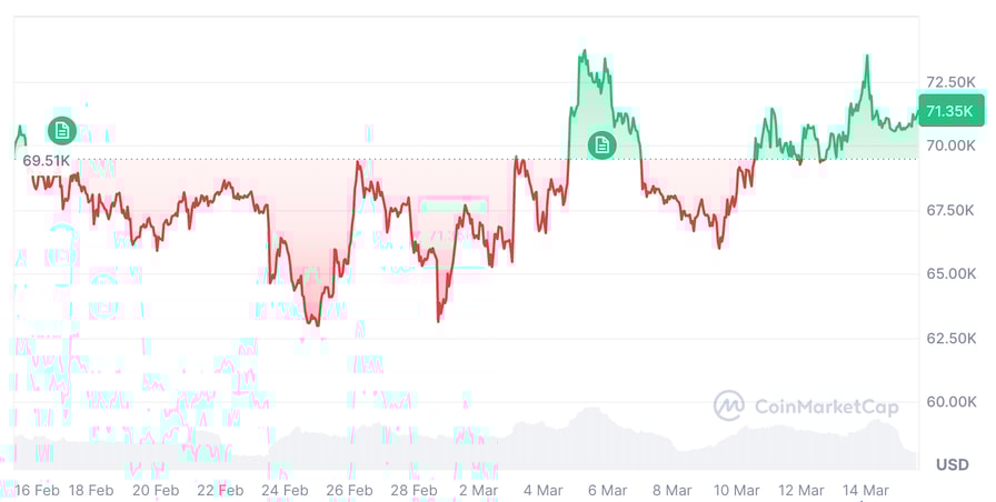 Bitcoin is trading at $71,350 at the time of publication, up 6.30% over the past seven days.