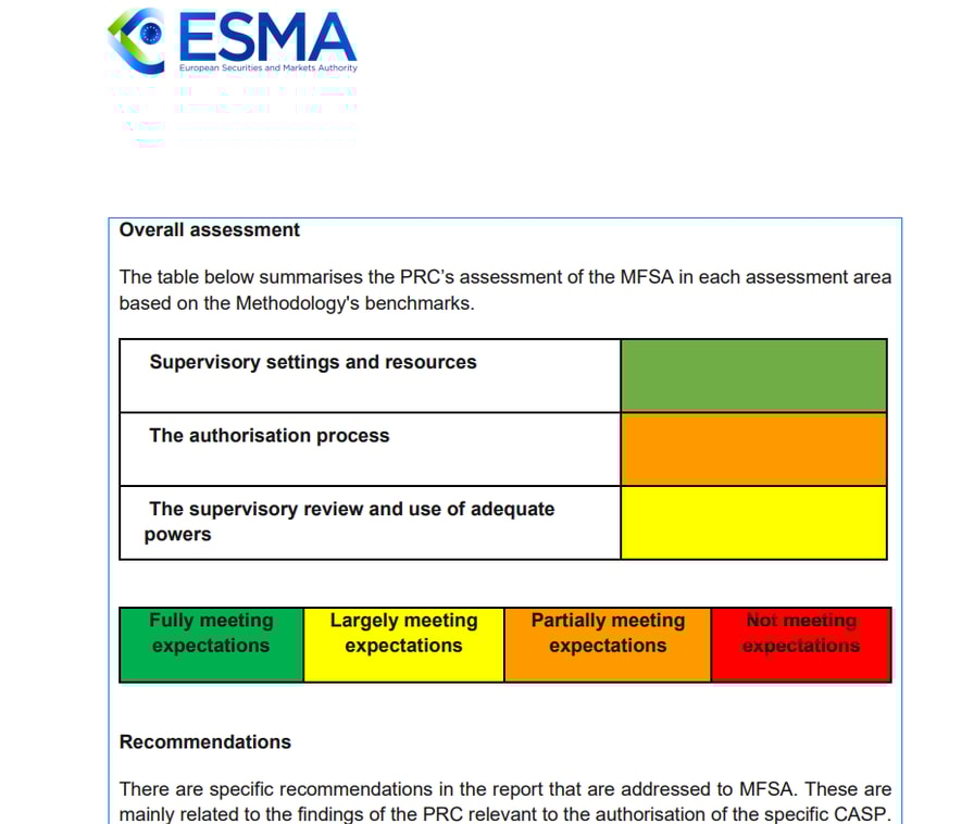 ESMA peer review of a Malta CASP approval. Source: ESMA