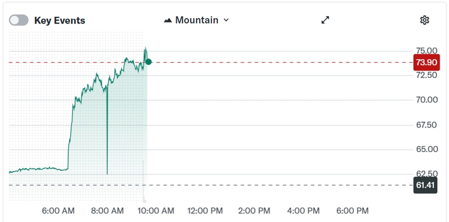 Circle (CRCL) shares began rallying in pre-market activity and extended gains after the opening bell. Source: Yahoo Finance
