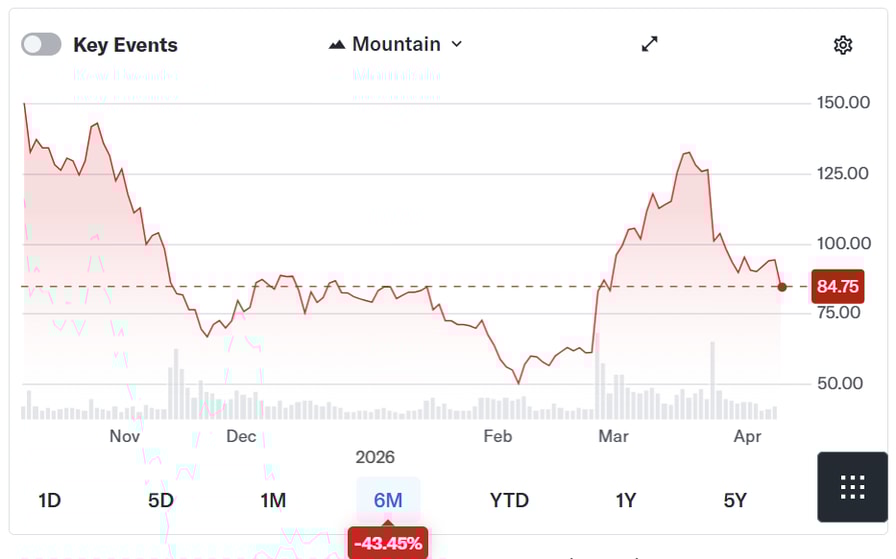The decline adds to a broader slide in the company’s shares, which are down nearly 24% over the past month and about 43% over the past six months, reflecting continued volatility after Circle’s high-profile public debut last year.