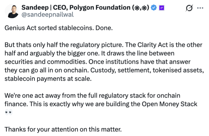 Thorn said the main perceived holdup for the CLARITY Act is the debate over whether stablecoin rewards will disrupt the traditional banking system — which has split the banking and crypto industry — but warned that more issues could surface after that debate is settled.
