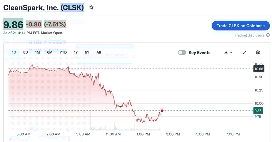 At the time of writing, the company’s stock was down about 7.5% on the day, according to Yahoo Finance data. Sector-tracking exchange-traded fund CoinShares Bitcoin Mining ETF was down 6.4%, at the same time.