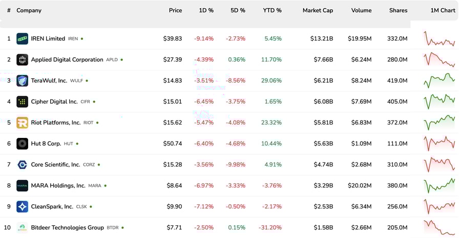 Top 10 Bitcoin miner stocks. Source: Bitcoinminingstock.io