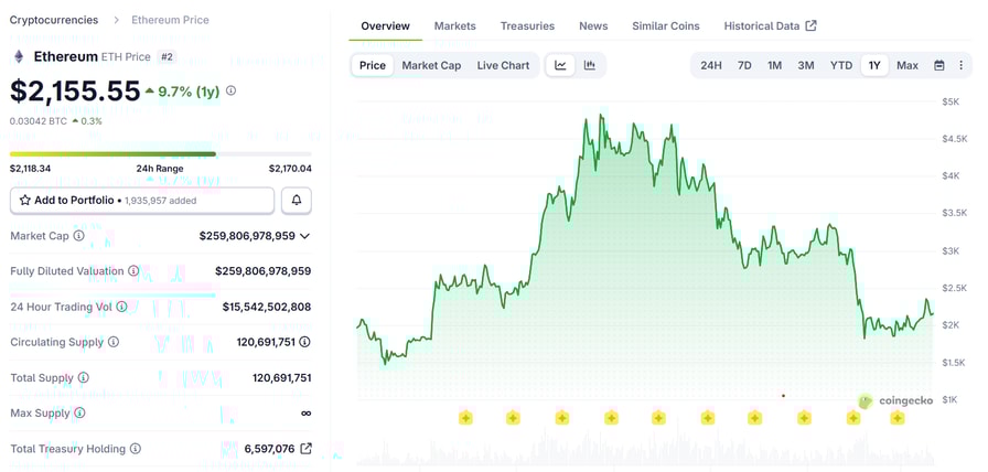 ETH price 56% below all-time high. Source: CoinGecko