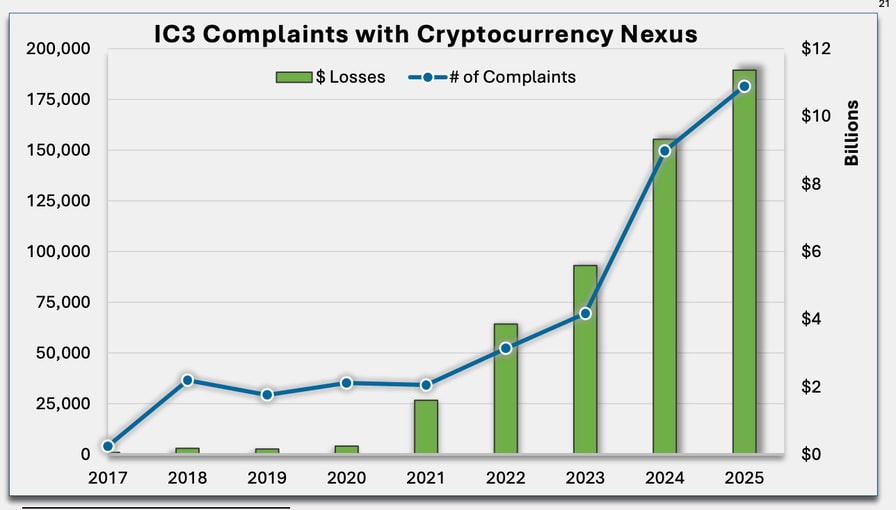 In its annual internet crime complaint report released on Monday, the FBI said that cryptocurrency and AI-related scams were “among the costliest” for Americans in 2025, with 181,565 complaints totaling more than $11 billion. According to the bureau, it received more than one million complaints in 2025 reporting losses of about $21 billion due to cyber-enabled crimes.