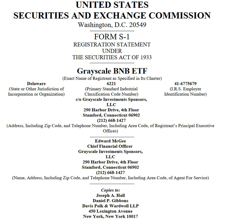Investment manager VanEck submitted a registration statement last year for its own proposed BNB ETF, including an amended Form S-1 seeking a Nasdaq listing under the ticker VBNB, placing it further along in the regulatory review process than Grayscale’s proposal.