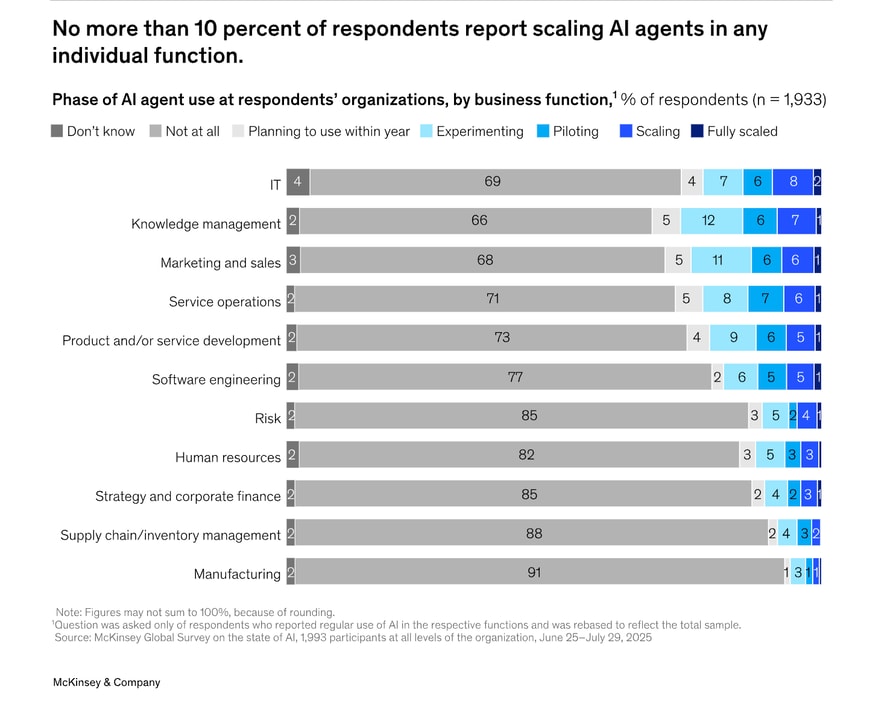 A survey tracking agentic AI usage in organizations. Source: McKinsey & Company