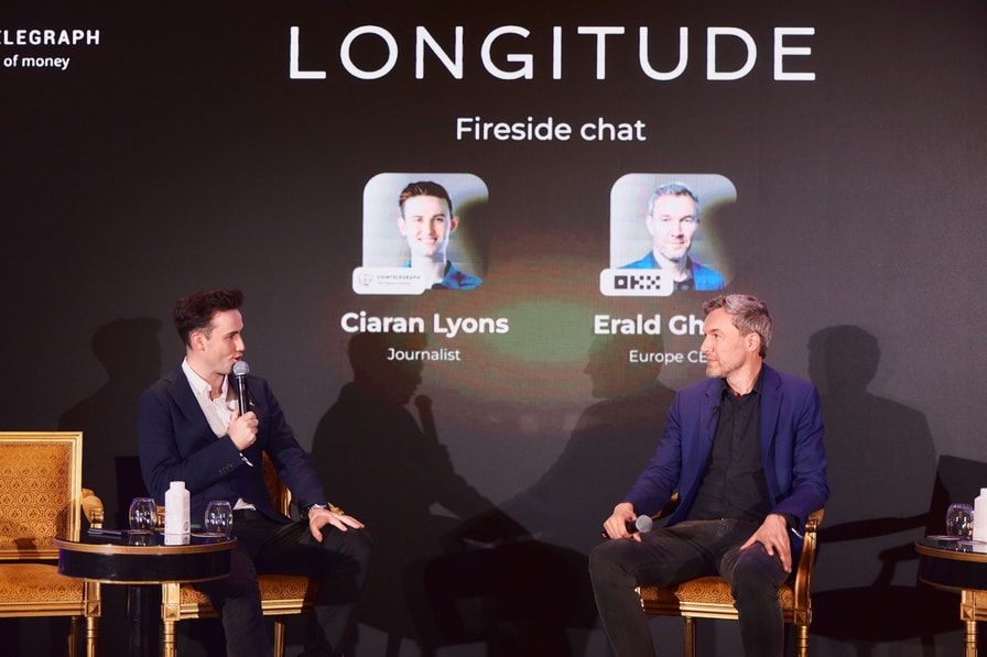OKX Europe CEO Erald Ghoos speaking at LONGITUDE. Source: Cointelegraph