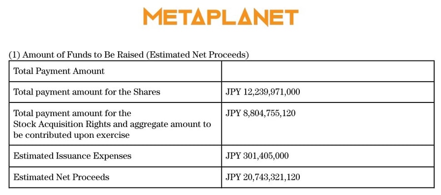In the purpose section of the filing, Metaplanet said proceeds from the offering are allocated primarily to additional Bitcoin purchases, investment in its Bitcoin income business and a partial repayment of borrowings under an existing credit facility.