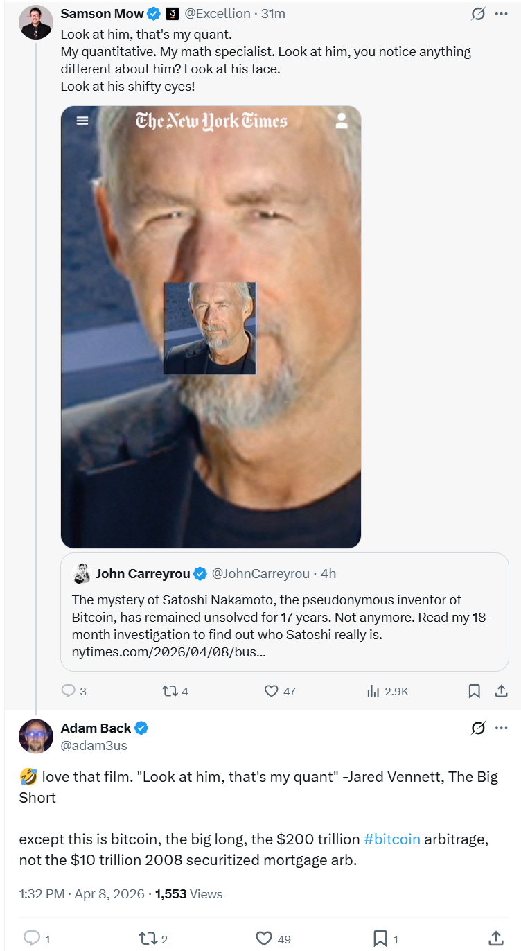 Back denied the claim, telling Cointelegraph he was referring reporters to his post on X after previously rejecting similar attempts to identify him as Satoshi. Back reiterated in the post that he is not Satoshi, adding that he “was early in laser focus on the positive societal implications of cryptography, online privacy and electronic cash, hence my ~1992 onwards active interest in applied research on ecash, privacy tech on cypherpunks list which led to hashcash and other ideas.”