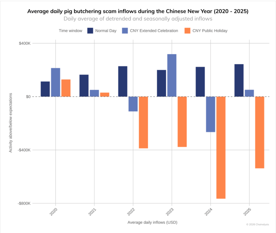 Average daily inflows from pig butchering scams between 2020 and 2025. Source: Chainalysis