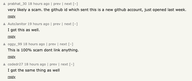 According to OX Security, attackers created fake GitHub accounts that posted messages in repositories they controlled, tagging developers to increase visibility. The posts claimed that recipients had won $5,000 worth of “CLAW,” a non-existent cryptocurrency falsely associated with the project, in an attempt to trick recipients into visiting a cloned website.