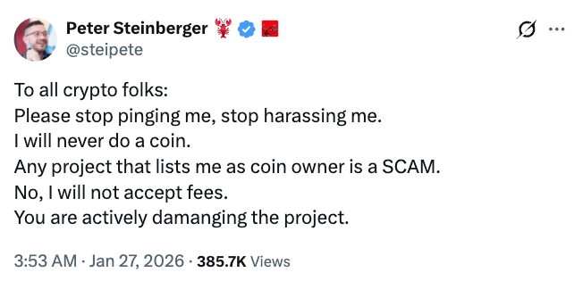 OpenClaw creator warned users project would never launch a token