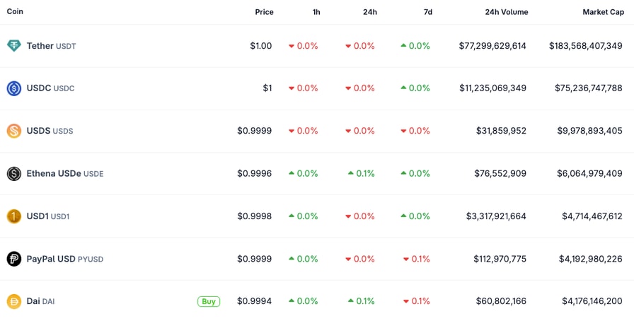 PayPal USD (PYUSD) is the sixth-largest stablecoin by market cap at $4.2 billion. Source: CoinGecko
